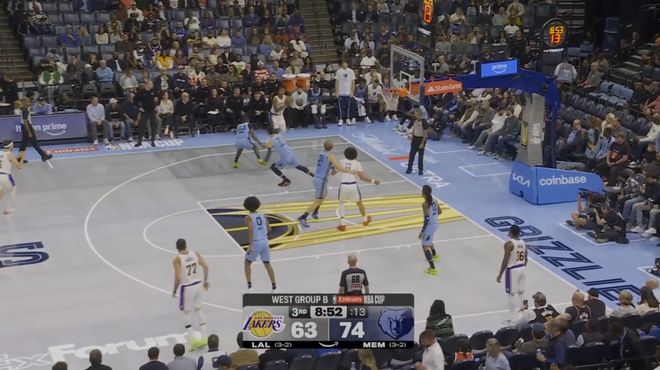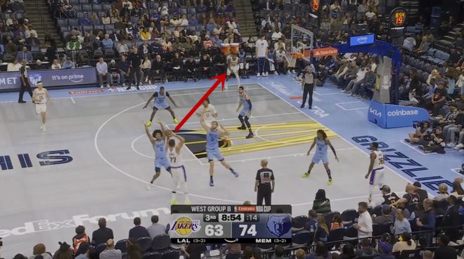 而且東契奇強大的不只是單挑能力,灰熊只要夾擊,東契奇必定能找到處于空位的隊友,代表性的一球來自第三節,東契奇在右側45度控球,灰熊果斷包夾,結果東契奇一記長傳直接找到了處于左側底角的八村壘,后者三分命中。